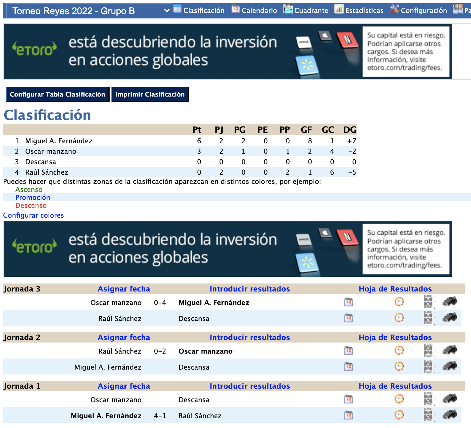 Previa Dany Barajas 0 - Use 2 Pablo Martínez 1 (14) - O. Manzano 1 (13) Semis D. Manzano 1 - Use 2 Migue 6 - Pablo Martínez 3 7º al 9º puesto (triangular) Raúl Sánchez 2 - Adrián Sánchez 3 Raúl Sánchez 2 - JC Huertas 0 JC Huertas 5 - Adrián Sánchez 1 5º y 6º puesto Dany Barajas 1 - O. Manzano 2 3º y 4º puesto Pablo Martínez - Dani Manzano Final Migue 5 - Use 3